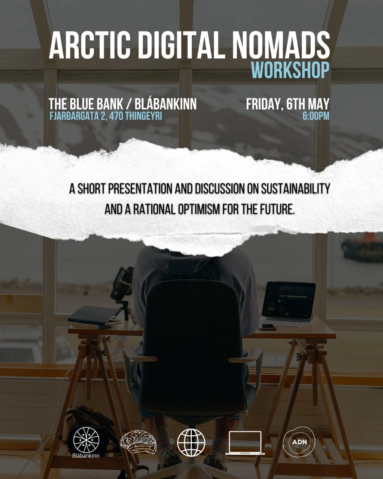 Ástralarnir Jay Topp og Dom Gould hafa undanfarnar vikur verið að flakka á milli þessara samvinnurýma, enda vinna þeir báðir mestmegnis í eigin verkefnum í fjarvinnu. Þeir eru í augnablikinu að búa til heimildarmynd um stafræna flakkara á norðurslóðum í samstarfi við ADN og Blábankann. Þeir hafa verið á Þingeyri síðan í lok apríl og hlakka til að spjalla við gesti um norðurslóðir, sjálfbærni og skynsamlega bjartsýni um framtíðina.